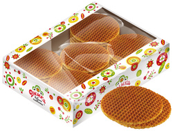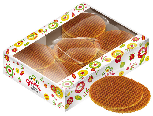 - Карамельные вафли с сиропной начинкой на основе сгущенного молока в ярком фирменном мини-экране