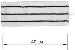 Моп имеет форму плоского прямоугольника, такая форма и чистящая поверхность из ворса длиной 1.5 см позволяет удобно собрать грязь по углам и захватить большую площадь убираемой поверхности, что в свою очередь уменьшает временные затраты на уборку больших площадей. Устойчива к износу, что обеспечивает долгий срок службы уборочного инструмента. Выполнена из микрофибры с щетинистым абразивом, имеет размер 40х14 см. Выдерживает до 300 циклов стирки. Максимальный объем впитывания - 400 мл.