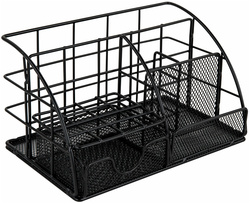Изготовлен из металлической сетки. Имеет размеры 140х220х127 мм. Состоит из пяти секций. Благодаря своему стильному дизайну, удобству использования и надежности, органайзер MONTE VITA станет незаменимым аксессуаром для вашего комфорта. Он обеспечит удобное хранение вашей канцелярии, косметики и прочих мелочей, а также легкий доступ к ним.