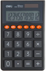 Карманный компактный 12-ти разрядный калькулятор бренда Deli - незаменимый помощник как для бухгалтеров, так и среди продавцов, учащихся и офисных сотрудников. Калькулятор имеет оптимальный набор вычислительных функций - основные математические операции, вычисление квадратного корня и т.д. Удобная клавиатура выполнена из пластика. Двойное питание осуществляется при помощи батарейки LR54, которая входит в комплект, а также при помощи солнечной батареи. Цвет корпуса: темно-серый. Размер: 115x72x11 мм. Вес: 0, 045 кг. Число строк дисплея: 1. Гарантийный срок: 36 мес.