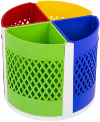 Эргономичная пластиковая подставка-трансформер размером 110х125 мм с регулируемым количеством отделений (от 4 до 8) для пишущих принадлежностей и канцелярских мелочей. Легко вращается на 360°. Поставляется без канцелярского наполнения.