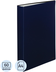 <p>Папка с файлами Комус формата А4 изготовлена из полипропилена толщиной 0,8 мм двух цветов: <nobr>темно-синего</nobr> (внешняя поверхность) и черного (внутренняя поверхность). Имеет 60 несъемных прозрачных вкладышей для удобного хранения и демонстрации документов. В каждом из них можно разместить по два листа. Ширина корешка составляет 40 мм. Файловая папка дополнительно оснащена внутренним карманом для <nobr>компакт-дисков</nobr> и визитных карточек. Плотность файлов 30 мкм.</p>