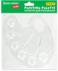 Палитра легко отмывается после использования. Имеет 6 отделений для размещения красок и 4 отделения для смешивания красок. Палитра овальной формы, с отверстием благодаря которому ее удобно держать в руке. Изготовлена из высококачественного полистирола белого цвета. Размер – 21х15,5х0,8 см.