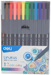 Яркий набор линеров Deli Linkus. Ручки с игловидным пишущим наконечником обеспечивают необыкновенно мягкое и четкое письмо на любой бумаге. Можно писать мелким шрифтом, закрашивать сложные детали, работать с линейками и трафаретами. Эргономичная форма изделия делает творческий процесс удобным для всех. Ваша рука не будет напрягаться. Долгое время сохраняют работоспособность без колпачка. Пигментные чернила на водной основе не имеют запаха, легко смываются с рук и отстирываются с ткани. Цвет колпачка соответствует цвету чернил. Поставляются в пластиковой упаковке.<BR>В наборе: 12 цветов. <BR>Цвет корпуса: черный.<BR>Диаметр пишущего узла: 0.45 мм.