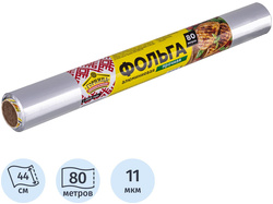 Фольга пищевая алюминиевая Горница 44 см х 80 м (толщина 11 мкм). <BR>Данную пищевую фольгу приобретают оптом заведения общественного питания, кулинарные предприятия, парикмахерские, магазины и промышленные организации. Большую популярность она завоевала и среди домохозяек. Это неудивительно, ведь фольга толщиной 11 микрон идеально подходит для приготовления и хранения продуктов не только на предприятиях, но и в домашних условиях. <BR>Продается в рулоне шириной 44 см, общая длина рулона — 80 м. Плотность — 11 мкм.