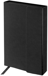 Интегральная обложка, выполненная в классическом черном цвете и стилизованная под гладкую кожу, фиксируется магнитным клапаном, поэтому ежедневник не откроется в сумке или портфеле и страницы не помнутся. Подходит для горячего тиснения. Срез и форзац ежедневника окрашены в цвет обложки, что придает изделию особый шарм. Дополнением является закладка-ляссе, с помощью которой при необходимости можно быстро открыть ежедневник на нужной странице. Ежедневник снабжен обширным справочным материалом. В конце имеются 7 страниц для записей и заметок.