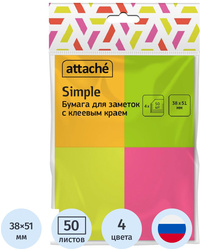 Стикеры Attache в формате 38×51 мм, состоят из 50 листов в каждом блоке (всего 200 листов). Стикеры 4-ех цветов (оранжевый, желтый, розовый, зеленый), скрепленных клеевым краем. Хорошо подойдут для сотрудников творческих профессий и руководителей: рекомендуются для использования в процессе совещаний, обучения, мозговых штурмов. Тон стикеров — неоновый. Плотность бумаги: 70-72 г/кв.м. Клейкий слой — 15 Н/м. Длина клейкой стороны 38 мм. Особых условий хранения не требует, сертификации не подлежит, срок годности не ограничен.<br><br>Чтобы увеличить срок службы стикеров, пожалуйста, следуйте рекомендациям:<br>1) Отделять стикер от блока следует вдоль клеевой полосы. Так можно избежать скручивания и последующего отклеивания стикера.<br>2) Прежде чем наклеивать стикер, убедитесь в отсутствии грязи и пыли на поверхности. На чистой поверхности срок службы клеевого слоя более продолжителен.