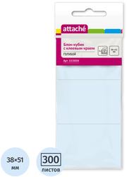 Стикеры Attache в формате 38×51 мм, голубого цвета, состоят из 100 листов в каждом блоке (всего 300 листов). Идеально подойдут для сотрудников творческих профессий и руководителей: рекомендуется для использования в процессе совещаний, обучения, мозговых штурмов. Тон стикеров — пастельный. Плотность бумаги составляет 62 г/кв.м, клейкий слой — 22Н/м. В упаковке 3 блока по 100 листов. После удаления бумаги на поверхности не остается следов клеевого состава, лист можно крепить повторно. Длина клейкой стороны 51 мм.<br /> Особых условий хранения не требует, сертификации не подлежит, срок годности не ограничен.<br /> <br /> Чтобы увеличить срок службы стикеров, пожалуйста, следуйте рекомендациям:<br /> 1) Отделять стикер от блока следует вдоль клеевой полосы. Так можно избежать скручивания и последующего отклеивания стикера.<br /> 2) Прежде чем наклеивать стикер, убедитесь в отсутствии грязи и пыли на поверхности. На чистой поверхности срок службы клеевого слоя более продолжителен.