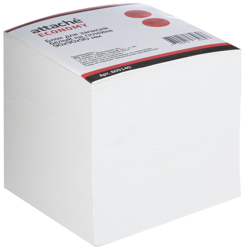 Блок для записей Attache Economy предназначен для работы в офисе или дома. Будет полезен в использовании для рабочих процессов и повседневных задач. Отлично подходит для работников офиса.<br>Блок высотой 9 см сложен из квадратных листов размером 9×9 см. Листы склеены между собой. Листы изготовлены из бумаги экономкласса плотностью 65 г/кв.м и белизной 60-75%. Цвет бумаги — оттенок белого, близкий к светло-серому. Блок для записей подходит для письма любыми типами ручек и карандашей. Для повышения удобства рекомендуется использование в пластиковых подставках и настольных органайзерах. Поставляется в термоусадочной пленке, защищающей блок при транспортировке.