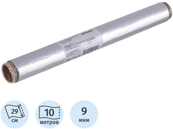 Фольга пищевая алюминиевая Комус 29 см х 10 м (толщина 9 мкм). <BR>Пищевая фольга Комус является удобным материалом для запекания и хранения продуктов: обладает прочностью, жаростойкостью, непроницаема для влаги и жира, сохраняет свежесть и качество продуктов в течение длительного времени. Пищевая фольга абсолютно безопасна при контакте с пищевыми продуктами. Отлично удерживает тепло и препятствует смешиванию запахов. <BR>Фольга поставляется в рулоне шириной 29 см, длиной рулона — 10 м. Плотностью — 9 мкм. <BR><BR>Товар произведен под контролем ’’Комус’’. Мы специально позаботились о Партнерах, которые превыше всего ценят качество и комфорт и разработали линейку Одноразовой посуды самых востребованных размеров для обеспечения быстрого питания в офисе, образовательных и производственных учреждениях, сферы гостеприимство и общественное питание и многих других. Производство расположено в России, что гарантирует постоянный контроль качества и оптимальные цены. <br> <br> Посуда для профессионального использования создана для ресторанов, кафе и других заведений общественного питания. Прочная, термостойкая и удобная — оптимальное решение для интенсивной работы.
