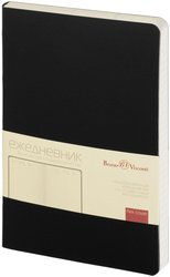 Ежедневник недатированный Bruno Visconti Megapolis Flex выполнен из искусственной кожи Soft Touch A5, содержит 136 листов чёрного цвета. Ежедневник Bruno Visconti Megapolis Flex формата A5 (14×21 см) с мягкой обложкой чёрного цвета выполнен из искусственной кожи с отделкой Soft Touch. Обложка имеет закруглённые углы.<br><br>Внутренний блок из 136 страниц выполнен из бежевого офсетного материала повышенной плотности (90 г/кв.м.). Блок не привязан к конкретным датам, и пользователи могут указывать их в выделенном поле вверху страницы. Внутри ежедневника также есть справочный раздел и телефонная книга.<br><br>Печать блока выполнена в одном цвете, а скруглённые углы добавляют изысканности. Возможность нанесения логотипа на обложку делает его отличным выбором для персонализации и корпоративных нужд.