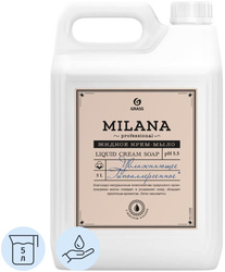 Крем-мыло Grass Milana Professional 5000 мл<br><br>Назначение: нежное жидкое крем-мыло обеспечивает деликатный уход за кожей, благодаря входящим в состав высококачественным экологичным компонентам природного происхождения. Обладает отличными очищающими и обезжиривающими свойствами, легко удаляет грязь, масла, жиры, белки. Устраняет резкие запахи, обладает приятным утончённым ароматом. Масло хлопковых семян, входящие в состав способствуют мягкому очищению и увлажнению кожи, сохраняя защитные функции и поддерживая естественный водный баланс. Нейтральный РН 5.5 обеспечивает нежный уход за кожей, не вызывая её сухости и раздражения.<br>Способ применения: нанести небольшое количество мыла на увлажнённую кожу, добиться образования пены и смыть водой.<br>Меры предосторожности: использовать строго по назначению!<br>Состав: aqua, Sodium Laureth Sulfate, Cocamidopropyl Betaine, Cocamide DEA, Glyceryl Cocoate, Sodium Chloride, Glycol Distearate, Fragrance, salt EDTA, Citric Acid, Cotton seed oil, Methylchloroisothiazolinone, Methylisothiazolinone.<br>Условия хранения: хранить при температуре от +5 до +35 градусов Цельсия. Хранить в сухом прохладном месте, плотно закрытым.<br>Срок годности: 24 месяца.