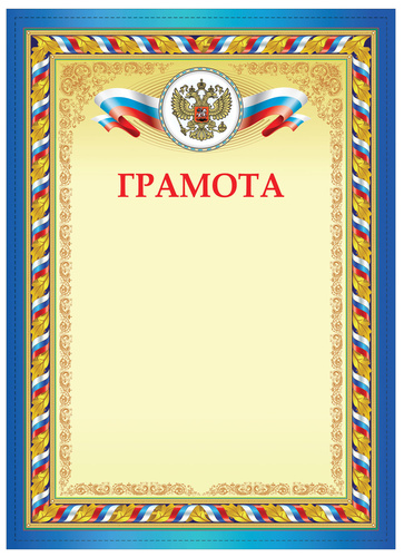 Изготовлена из плотной мелованной бумаги плотностью 200 г/м2. Составляется в свободной форме. Имеется изображение российской символики. Формат А4.