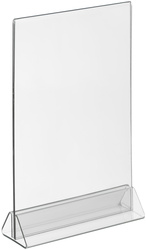 Ценникодержатель-подставка Комус акриловый 148×210 мм прозрачный (10 штук в упаковке)<br><br>Менюхолдер с треугольным основанием. Применяется для размещения информации. Материал — акрил.