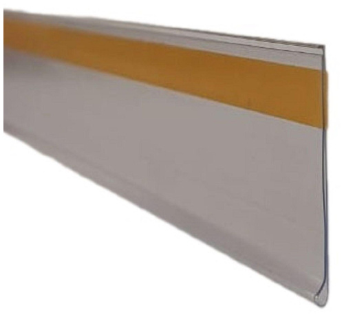 Ценникодержатель полочный Комус пластиковый 40×1000 мм прозрачный (100 штук в упаковке)<br><br>Самоклеющийся ценникодержатель dbr на двустороннем скотче универсален, быстро и просто крепится на торец любого стеллажа. Полочный ценникодержатель dbr позволяет разместить информацию о большом количестве товаров. Изготавливается методом экструзии. Используемый материал: композиция гранул ПВХ.