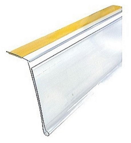 Ценникодержатель самоклеящийся на двустороннем скотче под углом 20°. Крепится к верхней части стеллажа. Перед установкой ценникодержателя необходимо очистить и обезжирить от грязи и пыли поверхность полки.