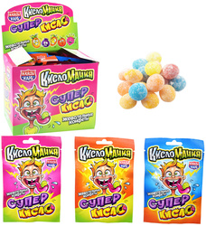 Состав: сахар, глюкозный сироп, растительный жир, загуститель(гуммиарабик), глазирователь (карнаубский воск), регуляторы кислотности (лимонная кислота, яблочная кислота), эмульгатор Е473, стабилизатор (кукурузный крахмал), ароматизаторы (клубника, ананас, манго, апельсин, голубика), красители Е102, Е110, Е129, Е133. Без ГМО.