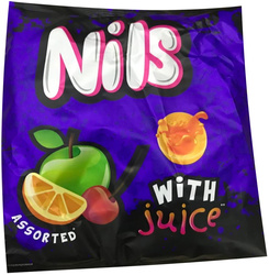 Состав: Сахар, патока, масло пальмовое рафинированное дезодорированное, крахмал кукурузный, стабилизатор: гуммиарабик; влагоудерживающий агент: сорбитовый сироп; регуляторы кислотности: кислота молочная, кислота лимонная; влагоудерживающий агент: лактат натрия; желирующий агент: пектин; сок концентрированный из яблока, ароматизаторы, эмульгатор: лецитин соевый; красители: паприка "Оранжевый", медные комплексы хлорофиллинов, куркумин; концентрированный сок фиолетовой моркови. Содержит сорбитовый сироп. При чрезмерном употреблении может оказывать слабительное действие. Может содержать диоксид серы, следы глютена, яиц, молока, арахиса, орехов и продуктов их переработки.