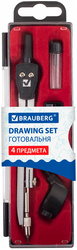 В состав готовальни входят 4 предмета: - Циркуль; - Пенал с запасным грифелем; - Держатель для карандаша; - Точилка.