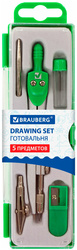 В состав готовальни входят 5 предметов: - Циркуль; - Рейсфедерная вставка; - Игольная вставка; - Точилка; - Пенал с запасным грифелем.