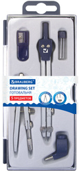 В состав готовальни входят 5 предметов: - Циркуль; - Кронциркуль; - Держатель для карандаша; - Точилка; - Пенал с запасным грифелем.