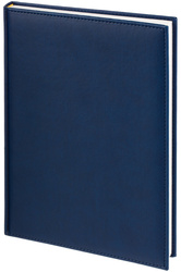Ежедневник датированный на 2026 год. Формат: 200×270 мм. Цвет: синий. Блок 352 страницы (176 листов) в 2 краски. Бумага офсетная 70 г/кв.м. Блок с перфорацией уголка. Алфавитный блок без вырубки. Дополнительный блок со справочной информацией включает: календарь на 2026-2029 года, планирование на год, справочная информация, карта часовых поясов, лучшие места отдыха в зависимости от времени года, международные размеры одежды и обуви, символы по уходу за одеждой, знаки зодиака, питание и расход калорий. Закладка-ляссе. Твердая обложка с прошивкой по периметру выполнена из искусственной кожи высокого качества. Возможно нанесение логотипа на обложку, любым способом тиснения (блинт или фольга). <br />
