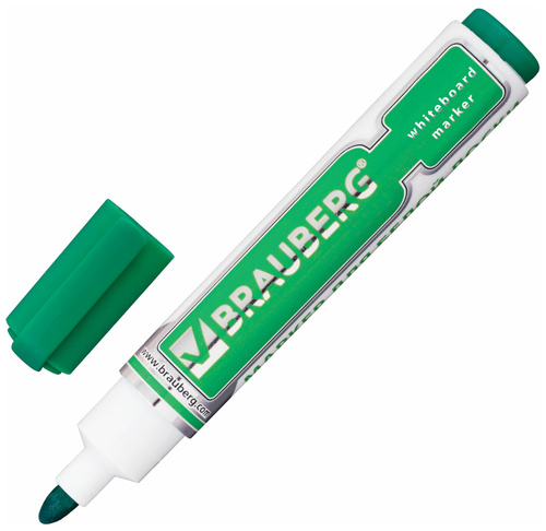 Маркер для доски зеленого цвета обладает круглым пластиковым корпусом диаметром 19 мм. Наконечник круглой формы обеспечивает толщину линии письма 5 мм, что позволяет писать крупным шрифтом, который будет хорошо виден. Благодаря спиртовой основе, чернила быстро высыхают и не оставляют разводов, легко стираются сухой губкой. Изделие не перезаправляется. Цвет колпачка соответствует цвету чернил.
