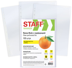 Перфопапки формата А4 с вертикальным размещением и универсальной перфорацией имеют матовую фактуру и прочные швы. Толщина пленки – 30 мкм, что подходит для хранения до 20 листов в 1 папке-файле. В комплекте 100 шт.