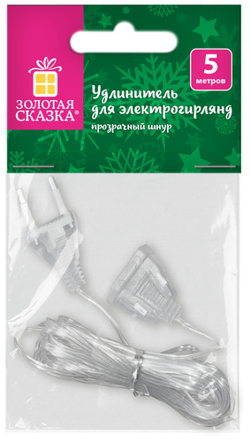 Электрический удлинитель представляет собой медный провод, помещенный в термическую усадочную трубку из поливинилхлорида, оснащенную штепсельной вилкой с одного конца провода и штепсельной розеткой – с другой. Тип используемой штепсельной вилки для соединения с источником питания – europlug (CEE 7/4). Данный тип вилки рассчитан на напряжение до 230 В и ток силой до 16 А. Длина провода – 5 м. Удлинитель предназначен для подключения электрогирлянд в местах, удалённых от стационарных розеток, и только внутри помещений.