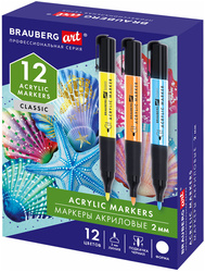 Набор акриловых маркеров с круглой формой корпуса из пластика и удобной прорезиненной ручкой, удобной для письма и рисования. В комплекте 12 ярких цветов. Форма наконечника – круглая. Толщина линии письма – 2 мм. Объем краски – 3,5 мл. Пигментированная акриловая краска на водной основе практически не имеет запаха, после высыхания обладает повышенной светостойкостью и водостойкостью.