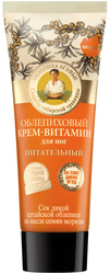 Крем для ног Рецепты бабушки Агафьи Облепиховый питательный 75 мл<br><br>Облепиховый крем-витамин для ног на основе сока диких ягод насыщает кожу витаминами, смягчает, надолго сохраняя ощущение комфорта. Сок дикой алтайской облепихи интенсивно питает кожу стоп. Масло семян моркови глубоко увлажняет, благодаря содержащимся в нём витаминам В1, В2, С и провитамину А. Органический экстракт лепестков календулы способствует регенерации клеток кожи, обладает противовоспалительным и защитным действиями.<br><br>Способ применения: нанесите небольшое количество крема на сухую чистую кожу ног мягкими массирующими движениями.<br><br>Состав: Aqua with infusions of Hippophae Rhamnoides Fruit Juice (сок ягод дикой алтайской облепихи), Organic Calendula Officinalis Flower Extract (органический экстракт лепестков календулы); Glycerin, Cetearyl Alcohol, Butyrospermum Parkii Butter, Urea, Isopropyl Palmitate, Daucus Carota Sativa Seed Oil (масло семян моркови), Stearic Acid, Palmitic Acid, Tocopheryl Acetate (витамин Е), Glycerin, Dimethicone, Sodium Cetearyl Sulfate, Sodium Polyacrylate, Benzyl Alcohol, Benzoic Acid, Sorbic Acid, Citric Acid, Parfum.