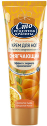 Уход за кожей любого типа заключается в своевременном увлажнении и питании. Сто Рецептов Красоты крем для ног Смягчающий с тыквой, 80 мл предназначен специально для сухой кожи стоп и пяточек.<br>Тыквенные масла в составе способствуют интенсивному питанию и увлажнению, бережно очищают эпидермис от ороговевших клеток. Крем для ног с уникальной формулой участвует в естественном синтезе коллагена, который так необходим для упругости и эластичности поверхности стоп. Масло, полученное из мякоти тыквы, успокаивает кожу, эффективно и бережно защищает её от раздражений и воспалений. Регулярный уход за кожей ног с использованием крема Сто Рецептов Красоты помогает предотвратить появление гематом и сосудистых звёздочек. Средство не вызывает аллергических реакций.<br>Крем смягчающий Сто Рецептов Красоты также содержит кукурузное масло, которое восстанавливает защитные функции кожи, интенсивно питает, смягчает и увлажняет поверхность стоп и пяточек. Компонент отвечает и за эффективное обогащение клеток полезными микроэлементами и витаминами, параллельно помогая устранить запах пота.<br>Крем быстро впитывается, не оставляя жирной плёнки. Результат виден уже после первого применения: мягкие пяточки и ухоженная кожа стоп! Используйте крем каждый день, и ваши ножки всегда будут нежными и красивыми!<br>Женская косметика Сто Рецептов Красоты имеет на 100% натуральную основу. Бренд использует уникальную технику холодного приготовления.<br>Состав: Aqua, Isopropyl Myristate, Glycerin, Glyceryl Stearate, PEG-12, Zea Mays (Corn) Oil (масло кукурузное), Cetearyl Alcohol, Dimethicone, Cyclopentasiloxane, Cucurbita Pepo Seed Oil (масло тыквенное), Acrylates/C10-30 Alkyl Acrylate Crosspolymer, Butyrospermum Parkii (Shea Butter), Disodium EDTA, Ethylparaben, Farnesol, Lanolin, Methylparaben, Palmitic Acid, Parfum, PEG-40 Hydrogenated Castor Oil, Phenoxyethanol, Potassium Cetyl Phosphate, Stearic Acid, Triethanolamine, Urea, Limonene, CI 14720, СI 19140.<br>Хранить при температуре от 0 до +25 °С.<br>Небольшое количество крема нанесите на чистую кожу ступней и слегка помассируйте. Применяйте по мере необходимости.