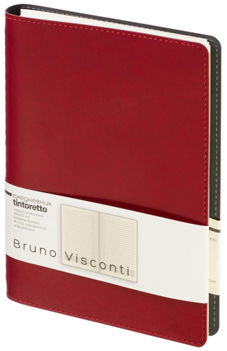 Ежедневник недатированный Bruno Visconti Tintoretto формата A5 оснащён полускрытым гребнем, который позволяет раскрывать блок на 360 градусов. Обложка выполнена из бордовой искусственной кожи с мягкой основой и декорирована аккуратной отстрочкой по краю. Внутренний блок содержит 272 страницы офсетной бежевой бумаги плотностью 70 г/кв.м. Печать выполнена в две краски, страницы оформлены ненавязчивой линовкой, не отвлекающей от записи. Ежедневник поставляется в подарочной упаковке и подходит для персонализации.