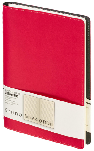 Ежедневник недатированный Bruno Visconti Tintoretto формата A5 предназначен для тех, кто предпочитает блоки на спирали. Полускрытый гребень обеспечивает удобное раскрытие на 360 градусов. Обложка выполнена из красной искусственной кожи и дополнена декоративной отстрочкой. Мягкая структура делает ежедневник гибким и комфортным.<br><br>Внутренний блок состоит из 272 страниц бежевой офсетной бумаги плотностью 70 г/кв.м с неброской линовкой и печатью в две краски. Ежедневник упакован в подарочную коробку и подходит для персонализации.