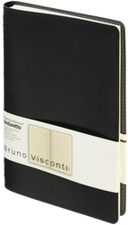 Ежедневник недатированный Bruno Visconti Tintoretto формата A5 оснащён полускрытым гребнем, который позволяет раскрывать блок на 360 градусов. Обложка выполнена из чёрной искусственной кожи и дополнена декоративной отстрочкой по краю. Мягкая конструкция делает ежедневник гибким и комфортным в использовании.<br><br>Внутренний блок включает 272 страницы офсетной тонированной бумаги плотностью 70 г/кв.м с печатью в две краски и сдержанной линовкой. Ежедневник поставляется в подарочной упаковке и подходит для персонализации.