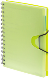 Ежедневник недатированный Attache Bright Colours формата A5 с обложкой из плотного пластика с фактурой «волна» и подложкой из тактильно приятного цветного пластика. Листы выполнены из качественной тонированной офсетной бумаги плотностью 70-90 г/кв.м. Листы крепятся на металлическую спираль увеличенного диаметра, что облегчает перелистывание. Ежедневник закрывается на резинку и содержит три съёмных пластиковых разделителя для удобной организации записей. Дизайн обложки однотонный лаймового цвета. Линовка блока — в линию, печать выполнена в два цвета. Внутри отсутствуют ляссе, карманы и календарь.
