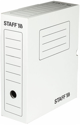 Изготовлен из белого гофрокартона марки Т-23, профиль «E». Толщина картона - 1,5 мм. Вмещает: до 900 листов. Выдерживает до 5 кг. Размер короба - 32,5x10x26 см. Имеет откидную крышку и отверстия по бокам для удобства переноски. Поставляется в разобранном виде.
