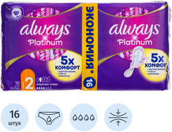 Прокладки женские гигиенические Always Ultra Platinum Normal Plus Duo (16 штук в упаковке)<br><br>Гигиенические прокладки с крылышками созданы для комфорта и защиты благодаря уникальному двойному верхнему слою с микроподушечками. Идеально подходят при незначительных и умеренных выделениях. Прокладки Always Platinum обеспечивают более эффективную защиту (по сравнению с Always Ultra) благодаря активно впитывающим боковым барьерам, защищающим от протеканий, и улучшенному внутреннему слою с более эффективным абсорбирующим материалом (по сравнению с Always Ultra), который впитывает и удерживает жидкость внутри прокладки, обеспечивая ощущение сухости.