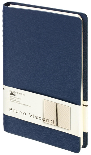 Ежедневник недатированный Bruno Visconti Alba формата А5 сочетает гибкую мягкую обложку и полускрытый гребень, позволяющий раскрывать блок на 360 градусов. Обложка выполнена из синей искусственной кожи с аккуратной прострочкой по периметру.<br><br>Внутри — офсетная бумага тонированного бежевого оттенка плотностью 70 г/кв.м с линовкой и печатью в две краски. Внутренний блок содержит 272 страницы, включая 19 страниц справочной информации. Удобный формат и прочное спиральное крепление делают ежедневник практичным инструментом для планирования. Упакован в подарочную коробку.