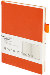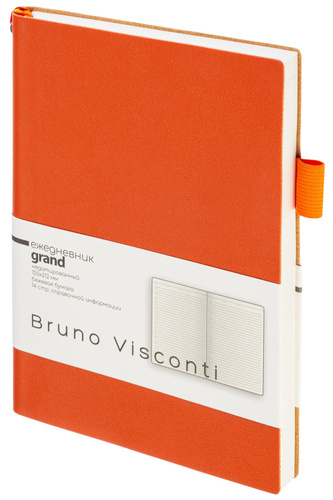 Ежедневник недатированный Bruno Visconti Grand формата A5 выполнен в мягкой обложке из оранжевой искусственной кожи. Модель оснащена петлёй под ручку и двойным ляссе. Ежедневник подойдёт тем, кто ценит нестандартные детали в деловых аксессуарах. Внутренний блок содержит 128 листов тонированной бежевой бумаги плотностью 80 г/кв.м с линовкой и однокрасочной печатью. В начале предусмотрено 14 страниц справочной информации. Переплёт сшивной, ежедневник подходит для персонализации.