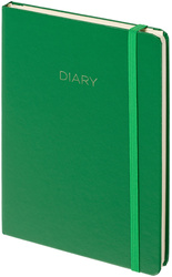 Ежедневник недатированный Attache Diary формата A5 предназначен для планирования и систематизации повседневных задач. Изделие выполнено в вертикальной ориентации и имеет размер 140×200 мм. Твёрдая обложка из искусственной кожи зелёного цвета оформлена в однотонном стиле с использованием тиснения фольгой. Для надёжной фиксации предусмотрена эластичная резинка, удерживающая блок в закрытом положении. Внутренний блок включает 136 листов (272 страницы) белой офсетной бумаги плотностью 70 г/кв.м, напечатанной в две краски. <br><br>Страницы размечены в линейку и не датированы, что позволяет гибко использовать ежедневник без привязки к календарю. Блок выполнен на ниткошвейном скреплении, листы имеют скруглённые углы, вырубка и перфорация отсутствуют. Вшитое тканевое ляссе облегчает навигацию по записям. Дополнительно предусмотрен информационно-справочный блок, содержащий данные о владельце, календари на 2024-2027 годы, карту часовых поясов, таблицы единиц измерения, телефонные коды городов и стран, международные размеры одежды и обуви, знаки зодиака, сведения о калорийности продуктов, расходе калорий, телефоны экстренных служб Москвы и автомобильные коды регионов. Также присутствует годовой планер. Цветной обрез, карманы, петля под ручку и подарочная упаковка не предусмотрены.