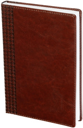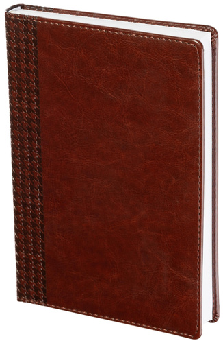 Ежедневник недатированный InFolio Lozanna — искусственная кожа А5 160 листов коричневый. Ежедневник размером 140×200 мм выполнен с твёрдой однотонной коричневой обложкой из гладкой глянцевой искусственной кожи с поролоновым наполнителем. Обложка украшена декоративным тиснением, имитирующим фактуру ткани по корешку, и прошита по периметру. Допускается нанесение тиснения блинтом, фольгой или УФ-печатью.<br><br>Внутренний блок состоит из 160 листов (320 страниц) белой офсетной бумаги с 100% белизной и плотностью 90 г/кв.м. Листы с линейкой напечатаны в две краски. Углы прямые, предусмотрена одна широкая шёлковая закладка-ляссе. Перфорация уголков отсутствует.<br><br>Информационный блок включает личные данные, карту мира, российские праздники и памятные даты, аббревиатуры для переписки, разницу во времени между Москвой и городами России и мира, карту России, соответствие размеров, международные единицы мер, пищевую ценность продуктов, расход калорий при физических нагрузках, время распада алкоголя в крови, полезные интернет-ресурсы, планирование задач, дни рождения и важные даты.<br><br>Изготовлен в России, тип крепления — сшивка. Прострочка по периметру выполнена. Ежедневник подходит для персонализации.