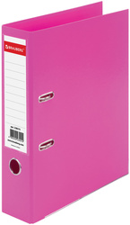 Папка-регистратор BRAUBERG "EXTRA" в формате А4 вертикальной ориентации - классический вариант хранения документов. Чем толще в папке корешок, тем больше листов можно расположить: ширина корешка в 75 мм позволяет разместить до 500 листов. Изготовлена из плотного картона, ламинированного с двух сторон цветной яркой пленкой из полипропилена, который не имеет резкого запаха, более долговечный и морозоустойчивый. Благодаря такому плотному покрытию допустима влажная уборка изделия. Нижние края папки защищены металлическим уголком, что позволяет служить в 2 раза дольше. Прорези для колец на внешней крышке позволяет оставаться папке закрытой даже при большом количестве бумаг. Яркий розовый цвет папки-регистратора серии "EXTRA" - смелое решение, чтобы разбавить серые рабочие будни.