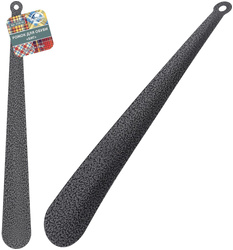 Прочный удобный металлический рожок для обуви подходит для любой обуви, предохраняет ее от деформации и обеспечивает комфорт при обувании. При надевании обуви рожок необходимо вставлять в обувь под углом 90 градусов.<BR>Материал: сталь c эмалевым покрытием. Общая длина 44 см.