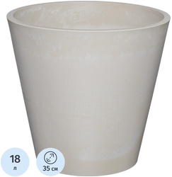 Горшок для цветов GreenShip 18 л песочный (33×35 см)<br><br>Горшок для цветов выполнен в классической круглой форме и бежевом цвете, из ударопрочного пластика с текстурой, имитирующей камень, которая создаётся при ручной обработке. Горшок предназначен для использования как в домашних условиях, так и на улице, благодаря своей устойчивости к перепадам температуры от −45 до +65 градусов Цельсия. Объём этого горшка составляет 18 литров, а его размеры — высота 33 см, ширина и диаметр верхней части 35 см, диаметра основания — 23 см. Вес горшка — 2.35 кг.<br><br>Изготовлен из пластика с добавлением битого камня и древесной муки с полимерами, что делает его не только прочным, но и «дышащим», что способствует комфортному развитию корней растений. В комплектации имеется дренажный вкладыш, который предотвращает застой воды и обеспечивает хорошую вентиляцию для корней. Также, горшок подлежит вторичной переработке и может быть оснащён дренажными отверстиями по желанию.<br><br>Горшок экологически безопасен, так как не выделяет вредных веществ в атмосферу и почву. Он имеет отличную устойчивость к плесени, грибку, гниению и коррозии, что делает его долговечным и подходящим для долгосрочного использования. Этот горшок является универсальным решением для выращивания как комнатных, так и уличных растений, и прекрасно впишется в разнообразные интерьеры и ландшафт.