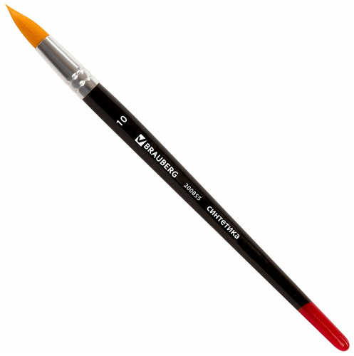 Кисть из синтетического ворса эластичная, не распадается, хорошо держит форму, долговечна и надежна. Кисть № 10 позволит прорисовывать детали и наносить крупные мазки и линии. Деревянную крашеную рукоятку кисти удобно держать в руке.