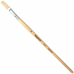 Кисть из щетины обладает высокой упругостью, хорошо держит форму, долговечна и надежна. Кисть № 8 позволит прорисовывать детали и наносить крупные мазки и линии. Деревянную лакированную рукоятку кисти удобно держать в руке.