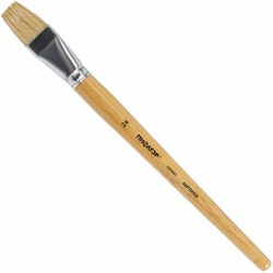 Кисть из щетины обладает высокой упругостью, хорошо держит форму, долговечна и надежна. Кисть № 24 позволит быстро заполнить фон, наносить крупные мазки и линии. Деревянную лакированную рукоятку кисти удобно держать в руке.