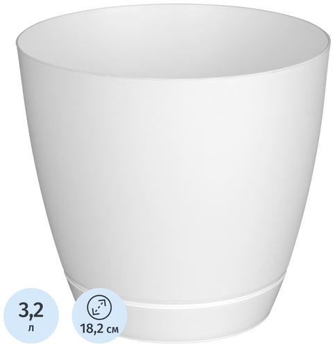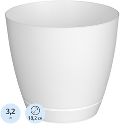 Горшок для цветов с поддоном Idiland Flora 3.2 л белый (16.5×18.2 см)<br><br>Представляем вам цветочный горшок Flora объёмом 3,2 литра с поддоном в стильном белом цвете! Этот элегантный горшок станет великолепным дополнением вашего интерьера, придавая ему свежесть и светлую атмосферу.<br>Преимущества горшка Flora:<br>1) Современный дизайн: чистый белый цвет добавляет лёгкости и воздушности, гармонично вписываясь в любой интерьер и создавая уютную обстановку.<br>2) Система автополива: поддон оснащён инновационной системой автополива, которая обеспечивает растениям оптимальный уровень влажности. Вода поступает к корням по мере необходимости, что позволяет избежать переувлажнения и пересыхания почвы. Эта функция особенно удобна для занятых людей, которые не всегда могут следить за поливом.<br>3) Функциональный поддон: помимо системы автополива, поддон предотвращает протекание и собирает лишнюю влагу, обеспечивая чистоту на столах и подоконниках.<br>4) Оптимальный объем: объём 3,2 литра идеально подходит для небольших комнатных растений, создавая комфортные условия для их роста и развития.<br>5) Прочные материалы: горшок изготовлен из высококачественного и устойчивого к внешним воздействиям материала, что гарантирует его долговечность и надёжность.<br>Добавьте стиль и заботу о ваших растениях с горшком Flora в белом цвете! Это идеальный выбор для любителей комнатной флоры, ценящих как эстетику, так и функциональность.<br>Цвет: белый.