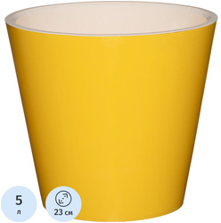 Горшок для цветов InGreen London 5 л с внутренней вставкой 4.5 л спелая груша (20.8×23 см)<br><br>Горшок предназначен для использования как в помещении, так и на улице. Он выполнен из полипропилена, что придаёт ему лёгкость и долговечность. Общий объём горшка составляет 5 литров, из которых 4.5 литра — объём внутренней вставки. Диаметр верха горшка — 23 см, высота — 20.8 см, а ширина основания — 15.5 см.<br><br>Горшок оснащён дренажным отверстием, что позволяет лишней влаге выходить из почвы и предотвращает застой воды, способствуя здоровому росту растения. Внутренний горшок с дренажными отверстиями обеспечивает циркуляцию воздуха, что помогает корням дышать. Внешнее кашпо придаёт горшку стильный и элегантный вид.<br><br>Горшок выполнен в жёлтом и фиолетовом цветах, которые придают ему натуральный и тёплый оттенок, подходящий для любых интерьеров. Это решение также может стать хорошим подарком для любителей растений.